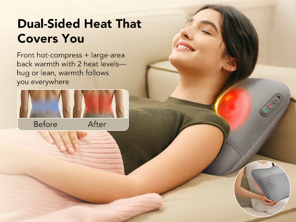 Integrated 15,000mm² thermal pads deliver soothing warmth to both sides of the massage area. Heat boosts circulation, eases stiffness, and provides extra comfort in colder months. Combine heat with kneading mode for the ultimate relaxation experience. -