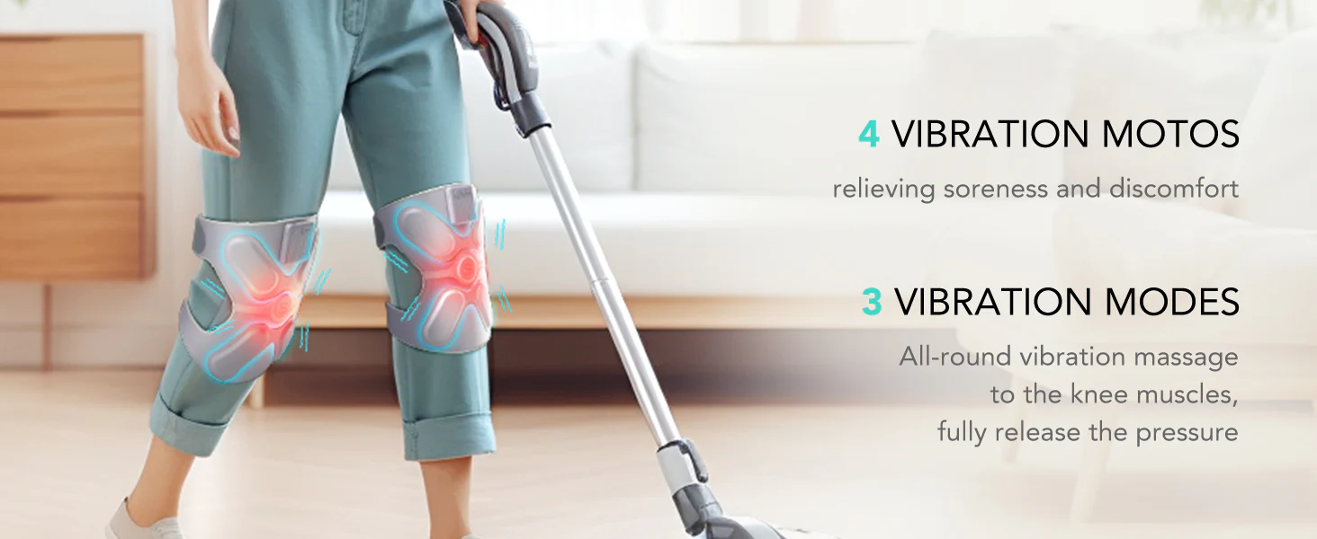 4 Dynamic Vibration Motors & 3 Massage Modes for an invigorating knee massage