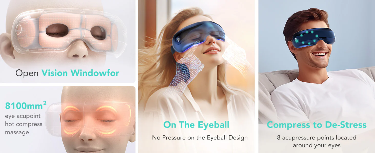 Gentle warmth (104-107°F) helps reduce eye strain, puffiness, dryness, and dark circles
