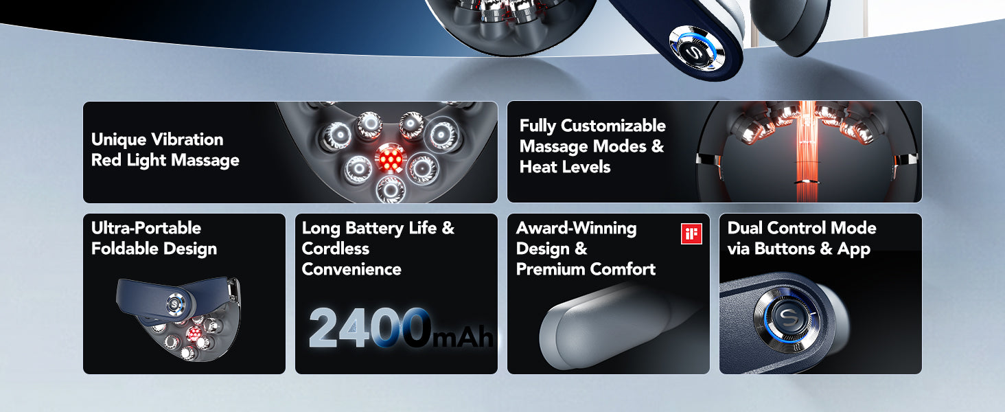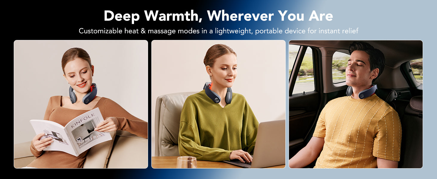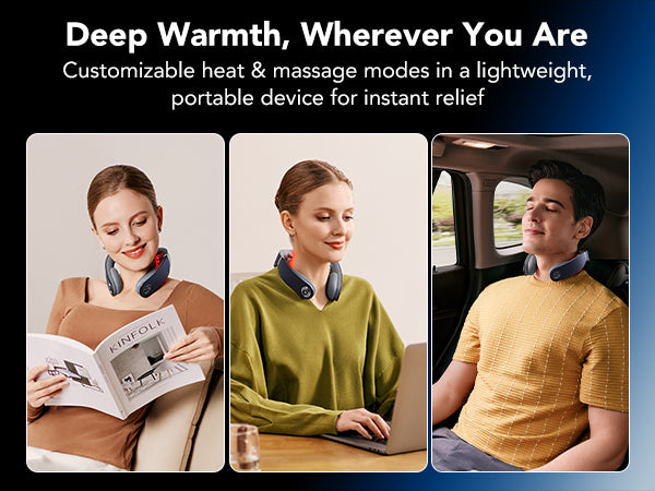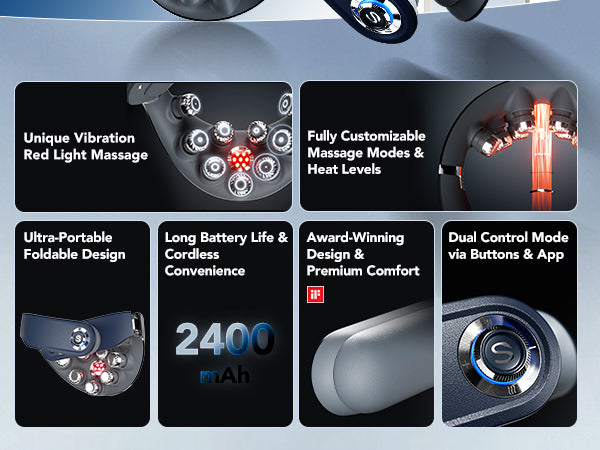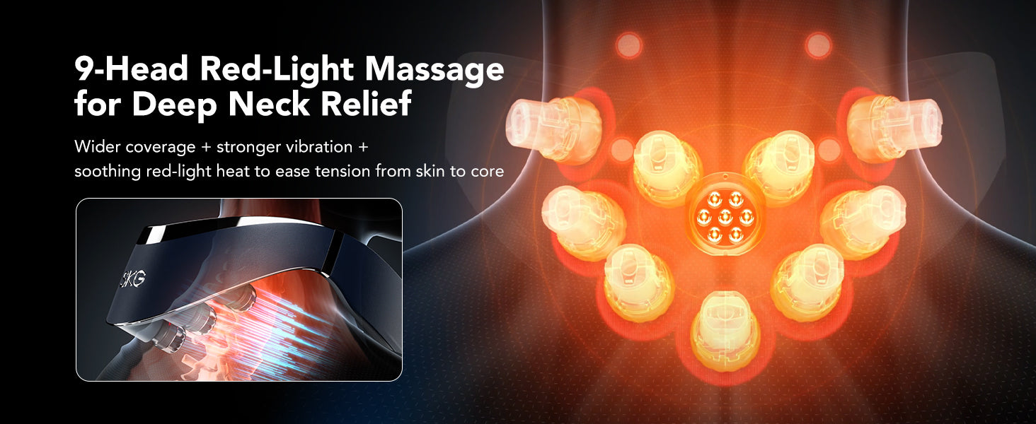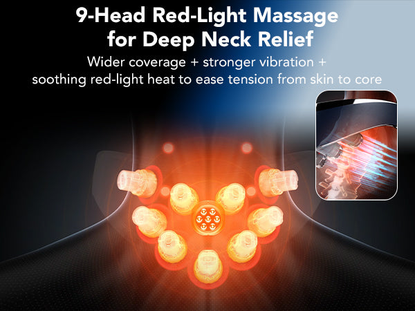 The best neck massager for pain relief. Engineered with 9 advanced vibrating massage heads and 30% stronger deep tissue vibration therapy, it targets sore neck and shoulder muscles with precision. Perfect for tension relief, circulation boost, and post-workout recovery, this portable neck and shoulder massager helps you feel relaxed and rejuvenated in minutes.