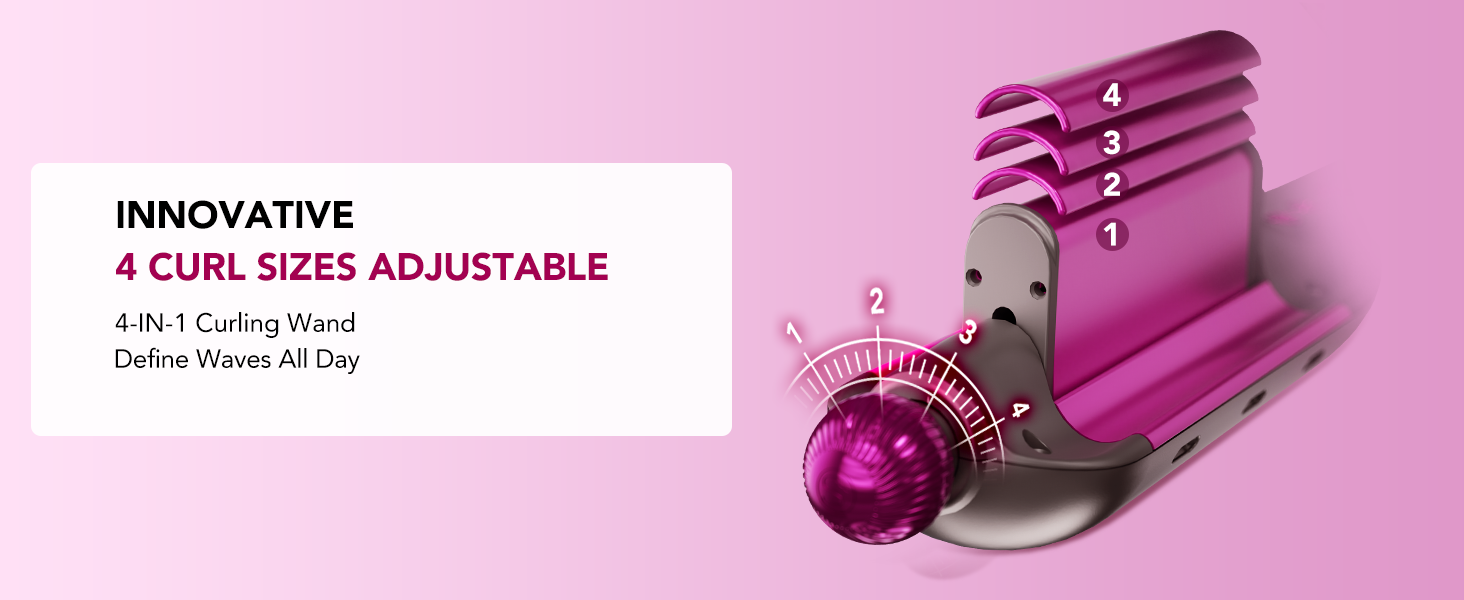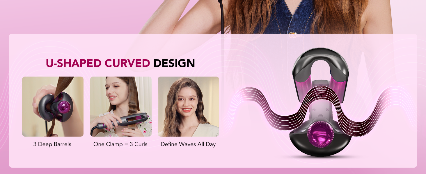 Upgrade your styling game with this versatile 4-in-1 hair crimper and curling wand. Featuring 3 deep U-shaped barrels plus a rotating clip, you can create 4 different curl sizes — from tight, bouncy curls to effortless beach waves — all with one tool.