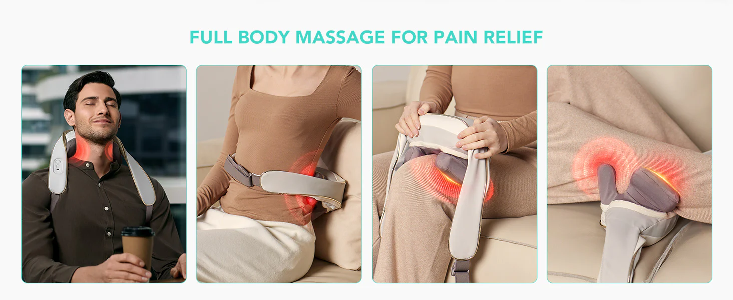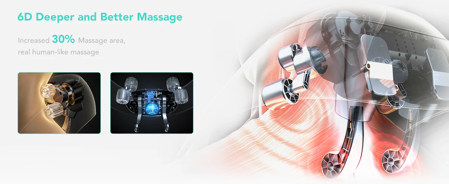 Features "4+2" 6D massage heads, delivering a deep tissue massage that feels just like real hands. The upgraded design offers 200% more coverage than traditional 4D massagers, soothing both shoulder and neck pain effectively -