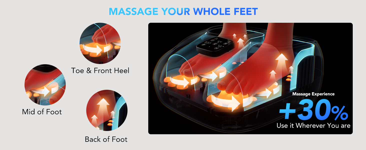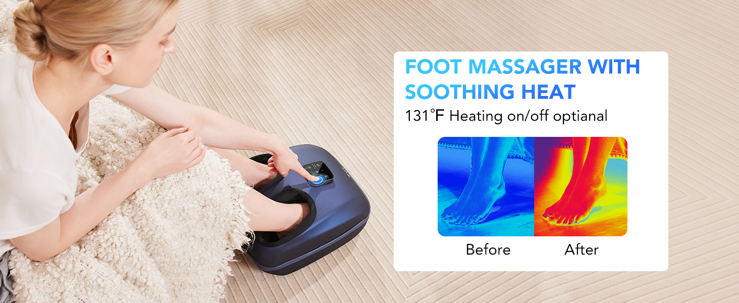 • Heat Therapy - Optional 131°F warmth to ease plantar fasciitis, neuropathy & cold feet. Help relieve plantar fasciitis, neuropathy pain, and numbness.