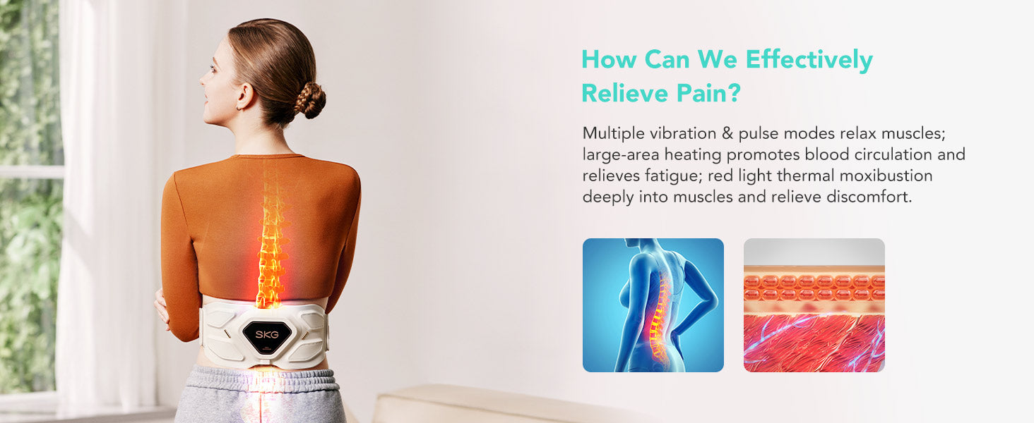The SKG W9 Pro Lower Back Massager offers both vibration and pulse massage with 3 vibration modes and 9 pulse intensities. This customizable feature ensures a comfortable, personalized massage experience that effectively relieves lower back discomfort.
